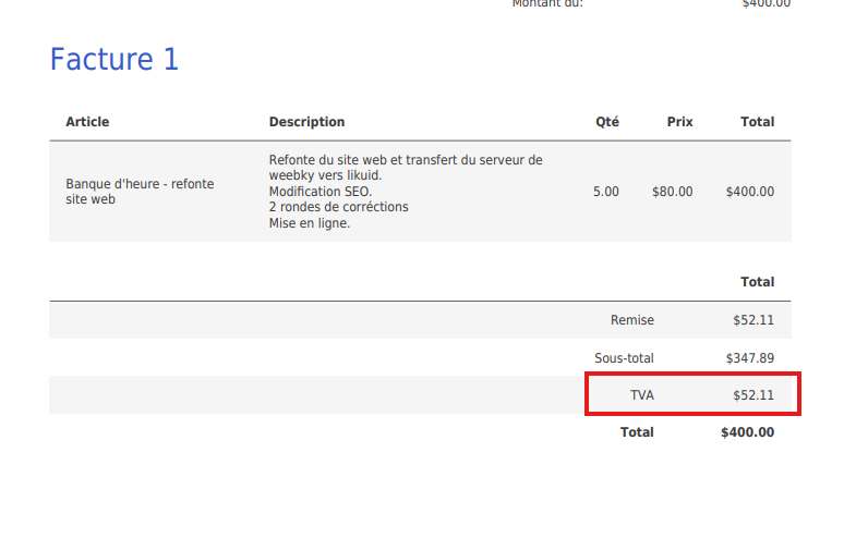 Now, when i create my pdf version, its still shows “TVA” instead of my custom taxes rates. (version : 1.7 of IP).
